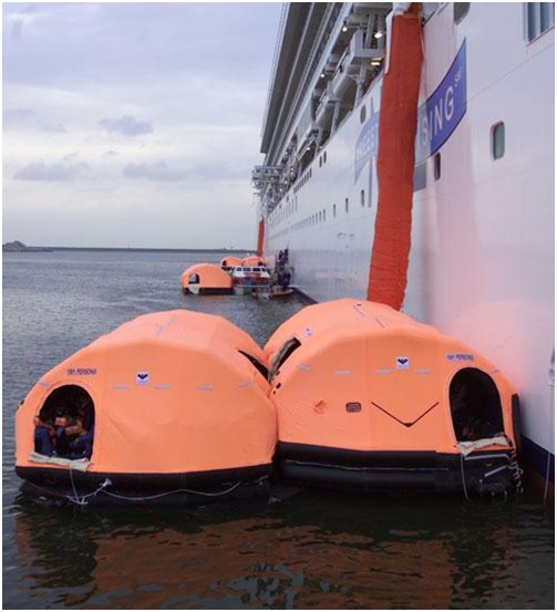 Marine evacuation system is an appliance for the rapid transfer of persons from the embarkation deck of a ship to a floating survival craft.