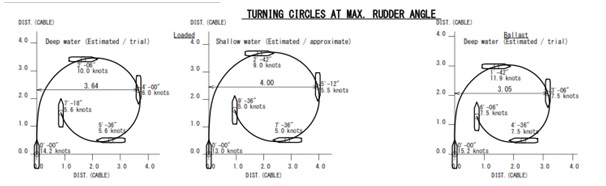 - Detailed information describing the manoeuvring characteristics of the ship