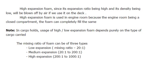 Why low expansion foam is used on deck and high expansion foam is used in engine room?